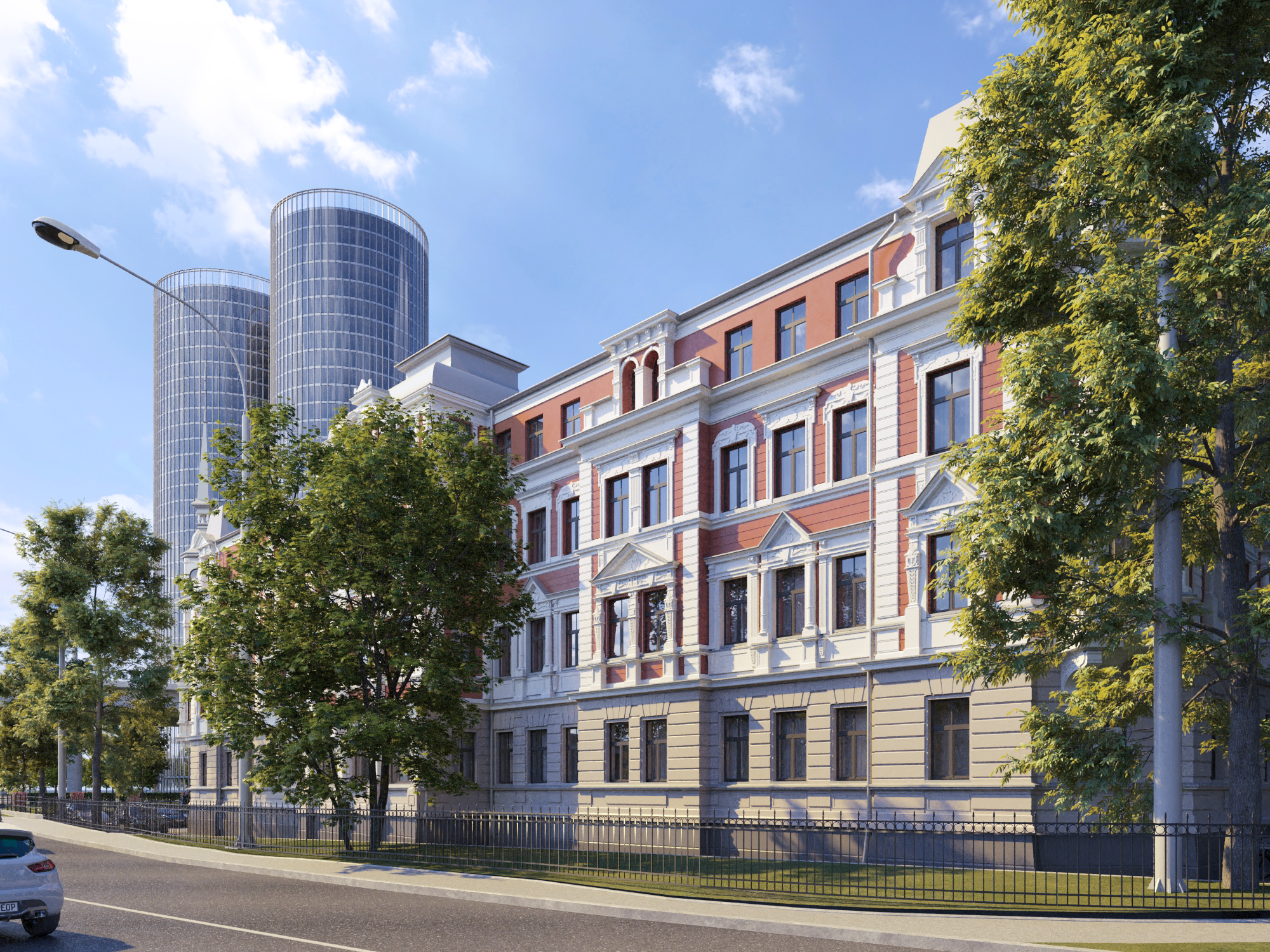 Renovation of the facade of the building, redecoration of the common-use areas, and improvement of the courtyard is being carried out by an experienced company "Fasāde Pro". This guarantees that the restoration of the building's historical charm will be implemented with great care.