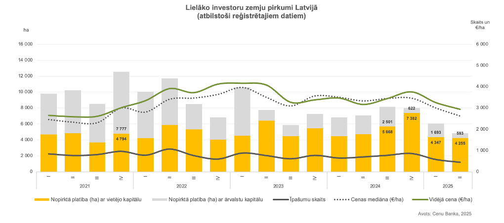 Neraugoties uz ārvalstu kapitāla klusuma periodu, vietējie meža zemju pircēji saglabā augstu aktivitāti, īpaši pieaugušu mežu segmentā, kur interese ir noturīga. To apliecina arī mežu izsoļu rezultāti, kuros konkurence starp vietējā kapitāla pircējiem ir spraiga, un piedāvātās cenas nereti pārsniedz tirgus vērtību.