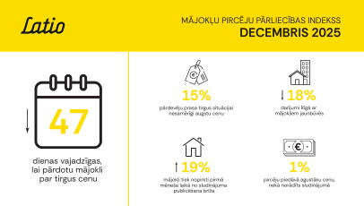 2025. gada mājokļu tirgus kļuvis manāmi aktīvāks, liekot pircējiem lēmumus pieņemt ātrāk. Tā liecina jaunākais “Latio” Mājokļu pircēju pārliecības indekss. Pirmajos trīs gada ceturkšņos kopējais darījumu skaits Latvijā audzis par aptuveni 20%. Daļu statistikas veido darījumi, kas bija atlikti iepriekšējos periodos un noslēgušies vien šogad. Līdz ar kārtējo EURIBOR likmes samazinājumu pavasarī, sabiedrībai signalizējot par inflācijas augstākā punkta pārvarēšanu, pakāpeniski samazinās arī mājokļa pārdošanai nepieciešamais laiks. Analizējot mājokļu tirgus tendences gada griezumā, “Latio” eksperti fiksējuši paradoksu: lai gan valstī būtiski pieaug viena cilvēka mājsaimniecību skaits, vienlaikus Latvija ir ES līdere pēc to iedzīvotāju īpatsvara, kuri spiesti dzīvot pārpildītos mājokļos.